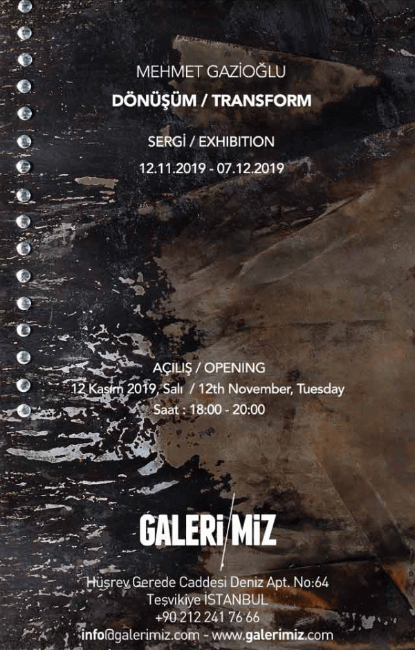 Galeri/ Miz accueillera Mehmet Gazioglu pour son Exposition Personnelle « TRANSFORMATION », du